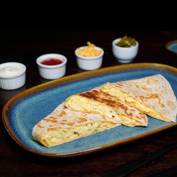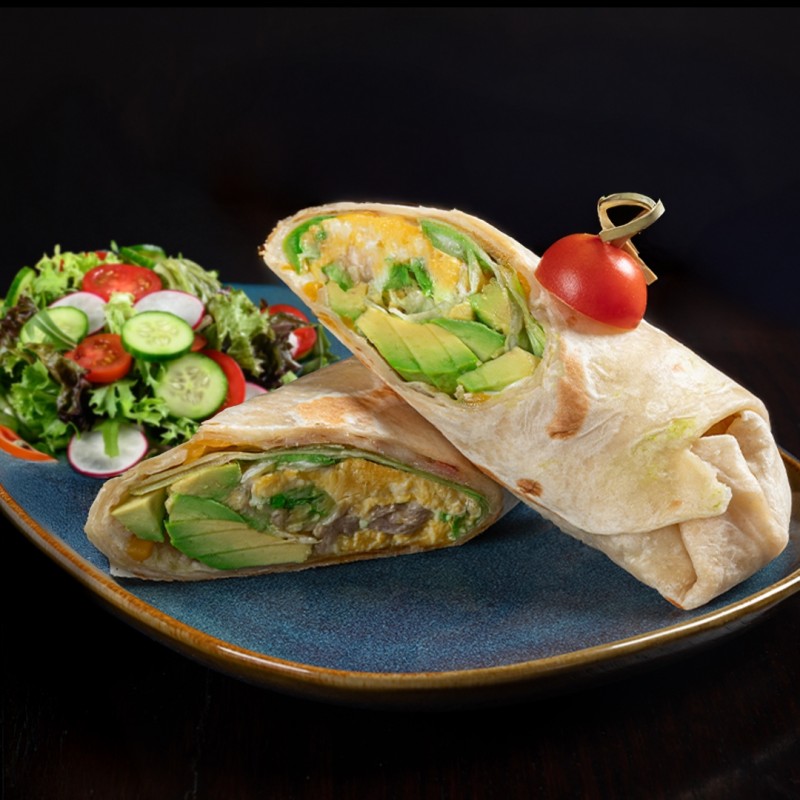 Scrambled eggs, avocado, lettuce & cheese served in a whole wheat tortilla