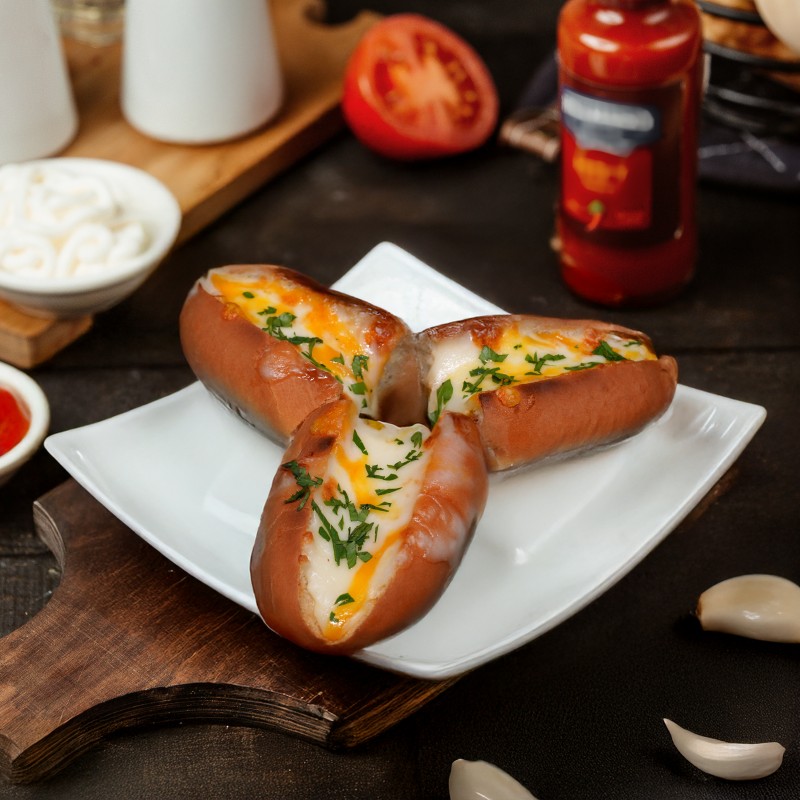 Tomato sauce, white cream cheese sauce, cooking cream, garlic, parmesan cheese